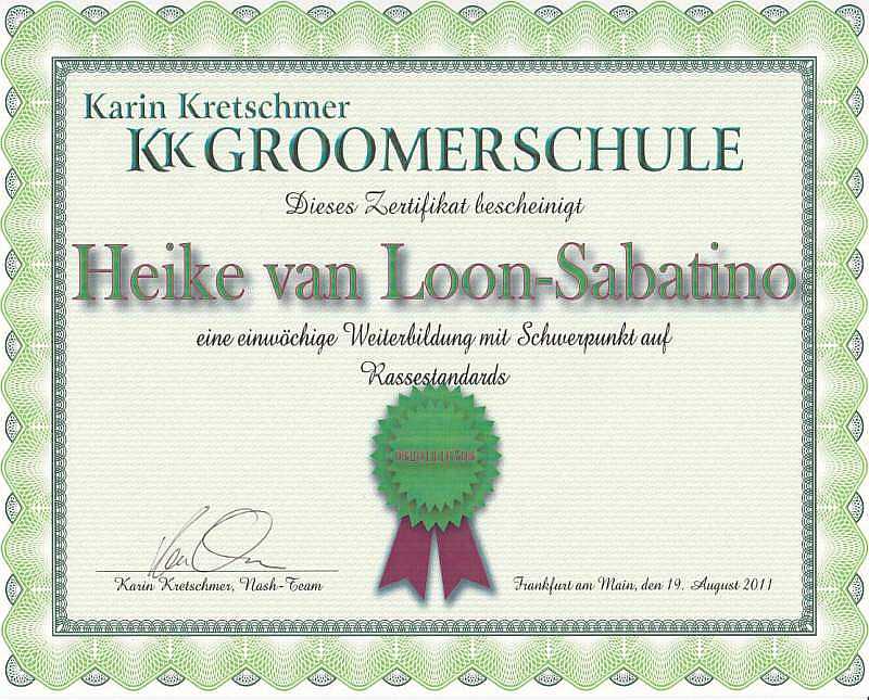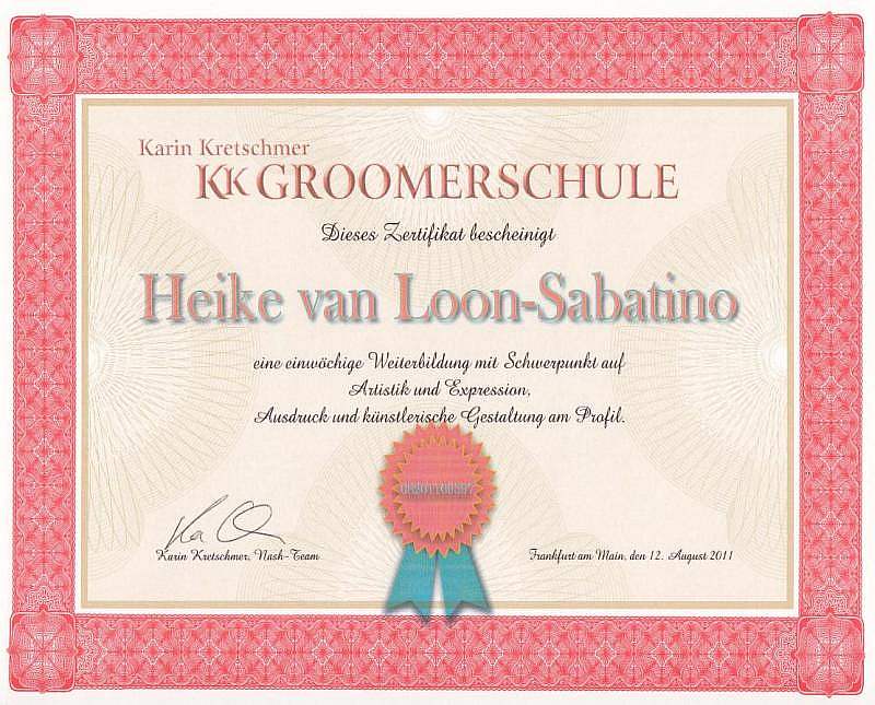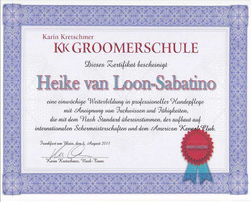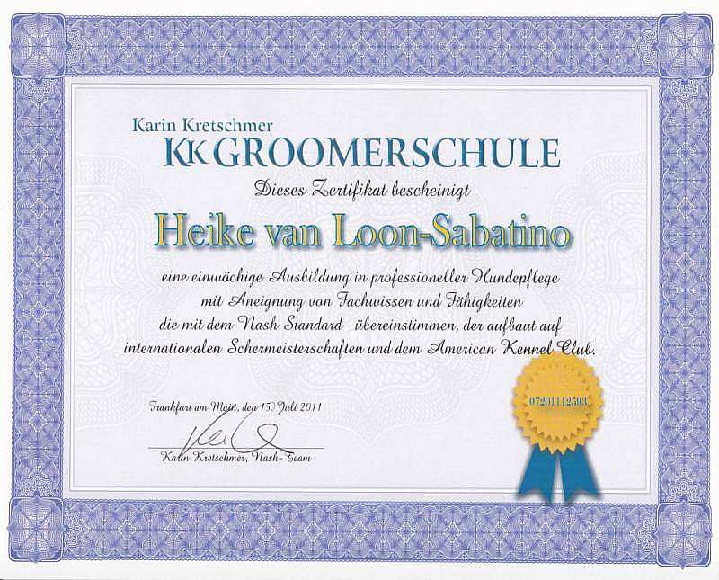 deswegen habe ich 2011 meine Ausbildung in der Groomerschule von Karin Kretschmer in Frankfurt am Main absolviert.